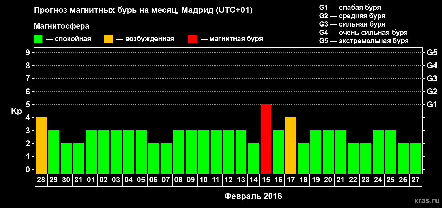 Прогноз магнитных бурь в Мадриде — 28 января 2016 года