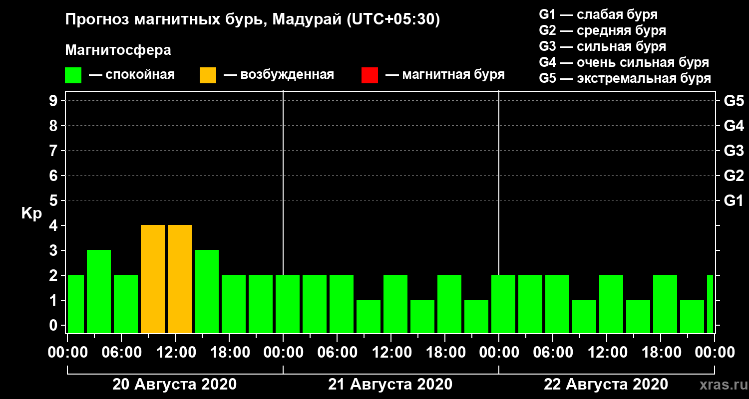 Прогноз магнитных бурь в Мадурайе — 20 августа 2020 года
