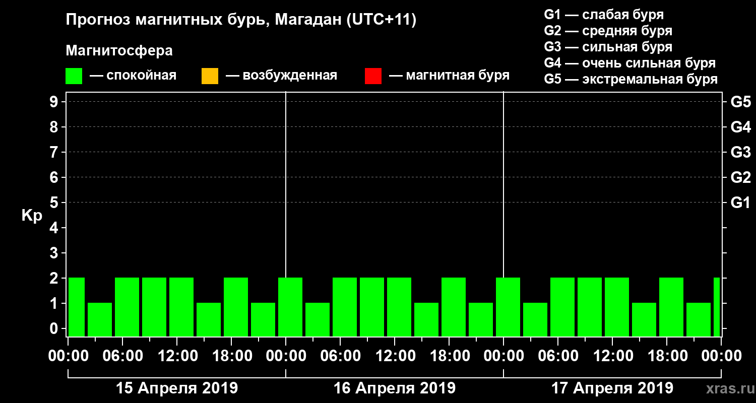 Прогноз магнитных бурь в Магадане на 15 апреля 2019 года