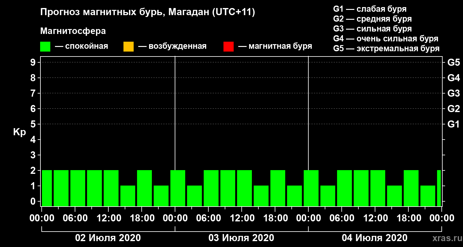 Прогноз магнитных бурь в Магадане — 2 июля 2020 года