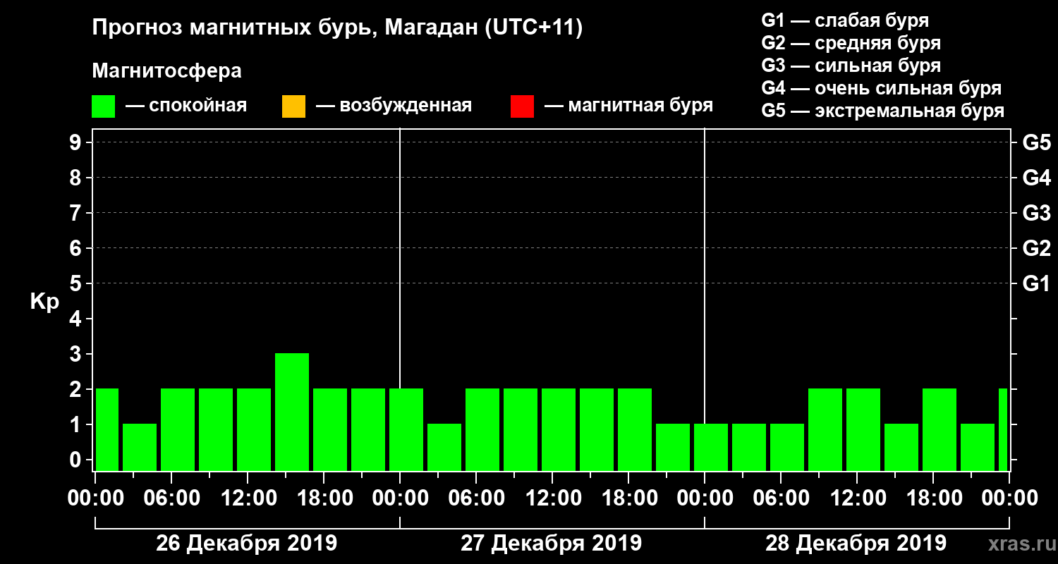 Прогноз магнитных бурь в Магадане на 26 декабря 2019 года