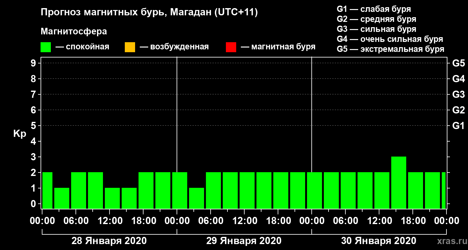 Прогноз магнитных бурь в Магадане на 28 января 2020 года