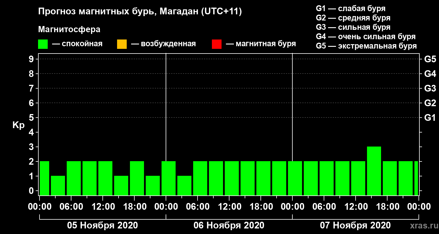 Прогноз магнитных бурь в Магадане — 5 ноября 2020 года