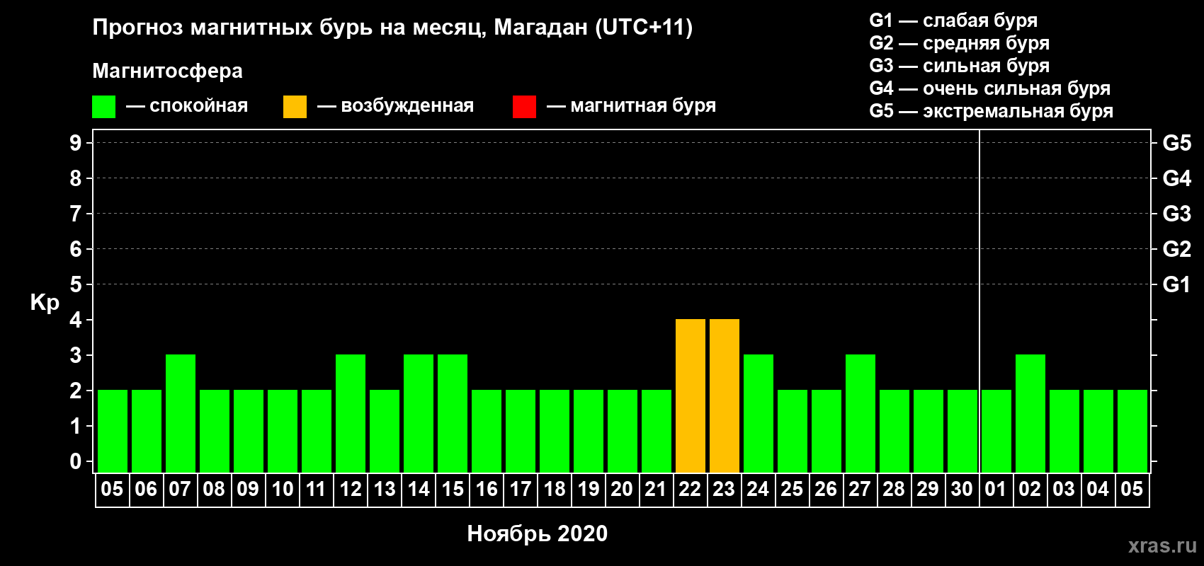 Прогноз магнитных бурь в Магадане на 5 ноября 2020 года