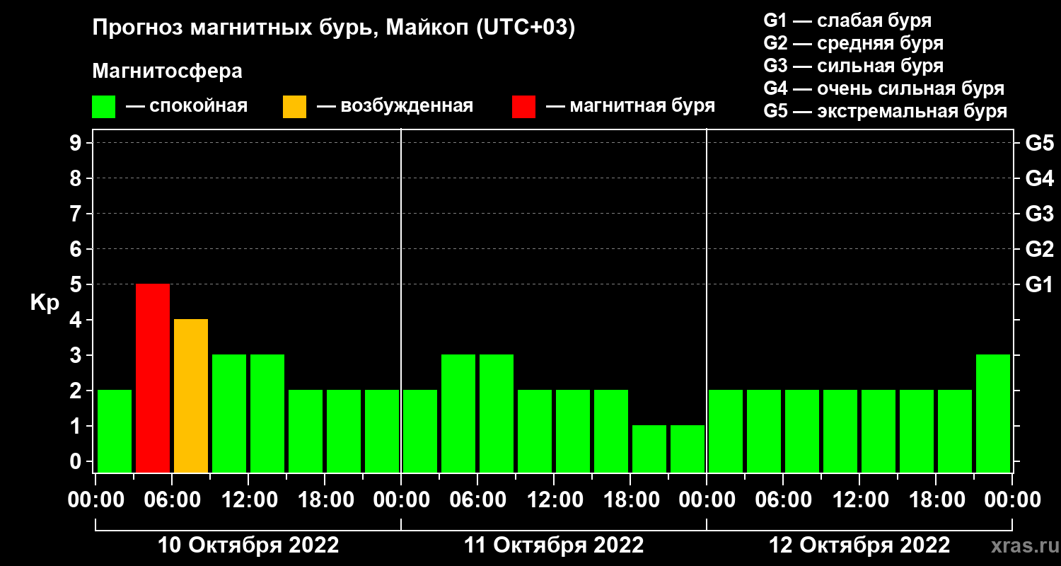Прогноз магнитных бурь в Майкопе — 10 октября 2022 года