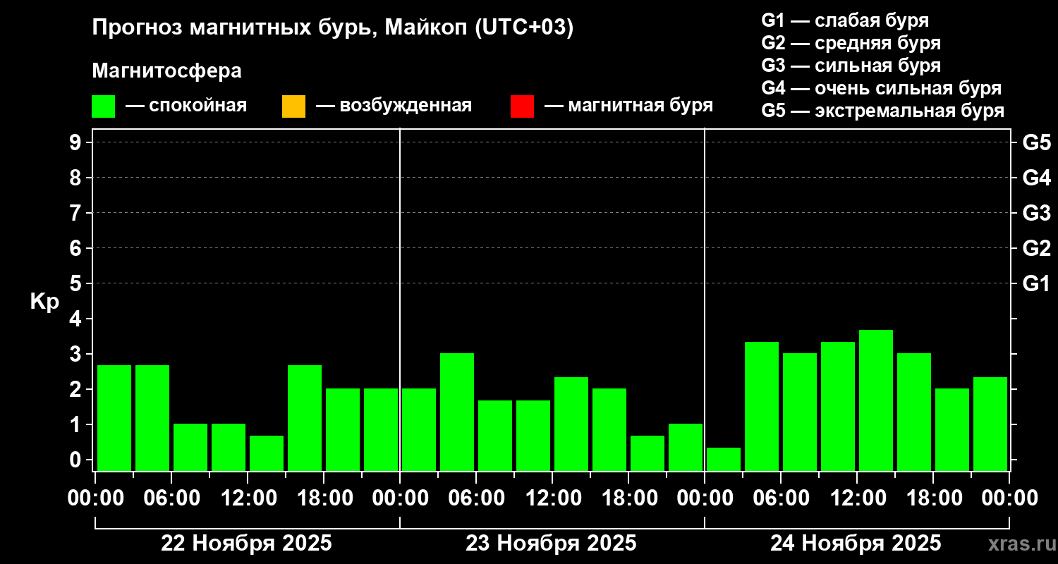 Прогноз магнитных бурь в Майкопе — 22 ноября 2025 года