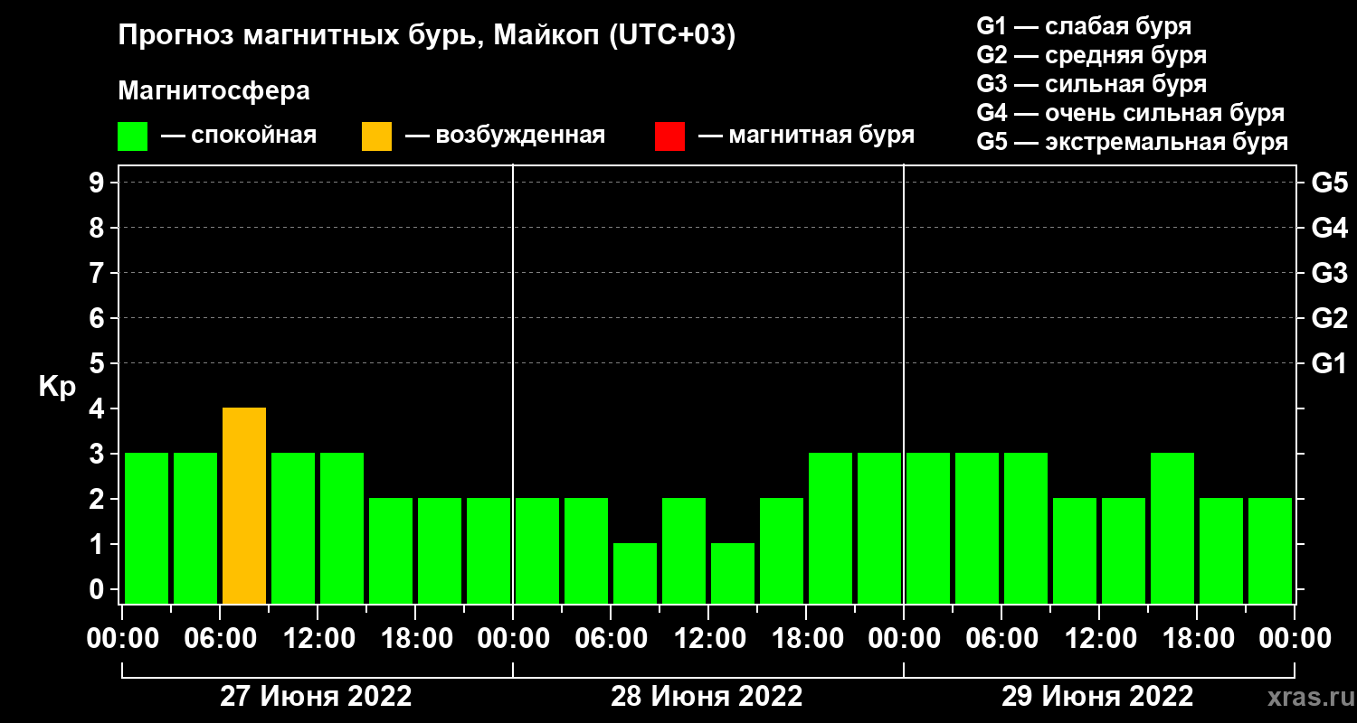 Прогноз магнитных бурь в Майкопе — 27 июня 2022 года