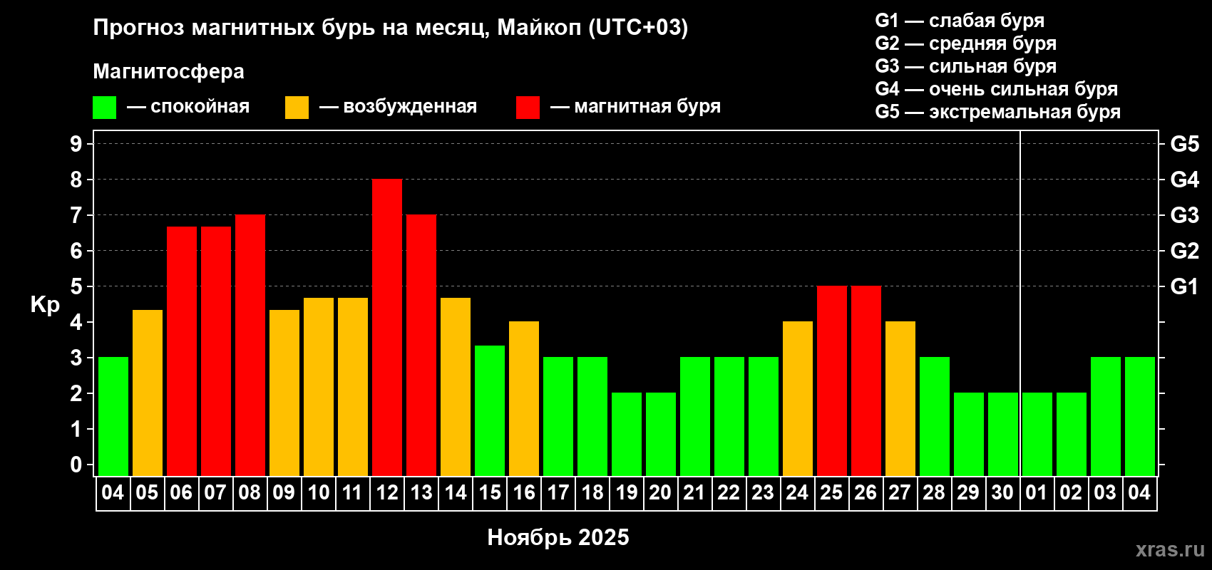 Прогноз магнитных бурь в Майкопе — 4 ноября 2025 года