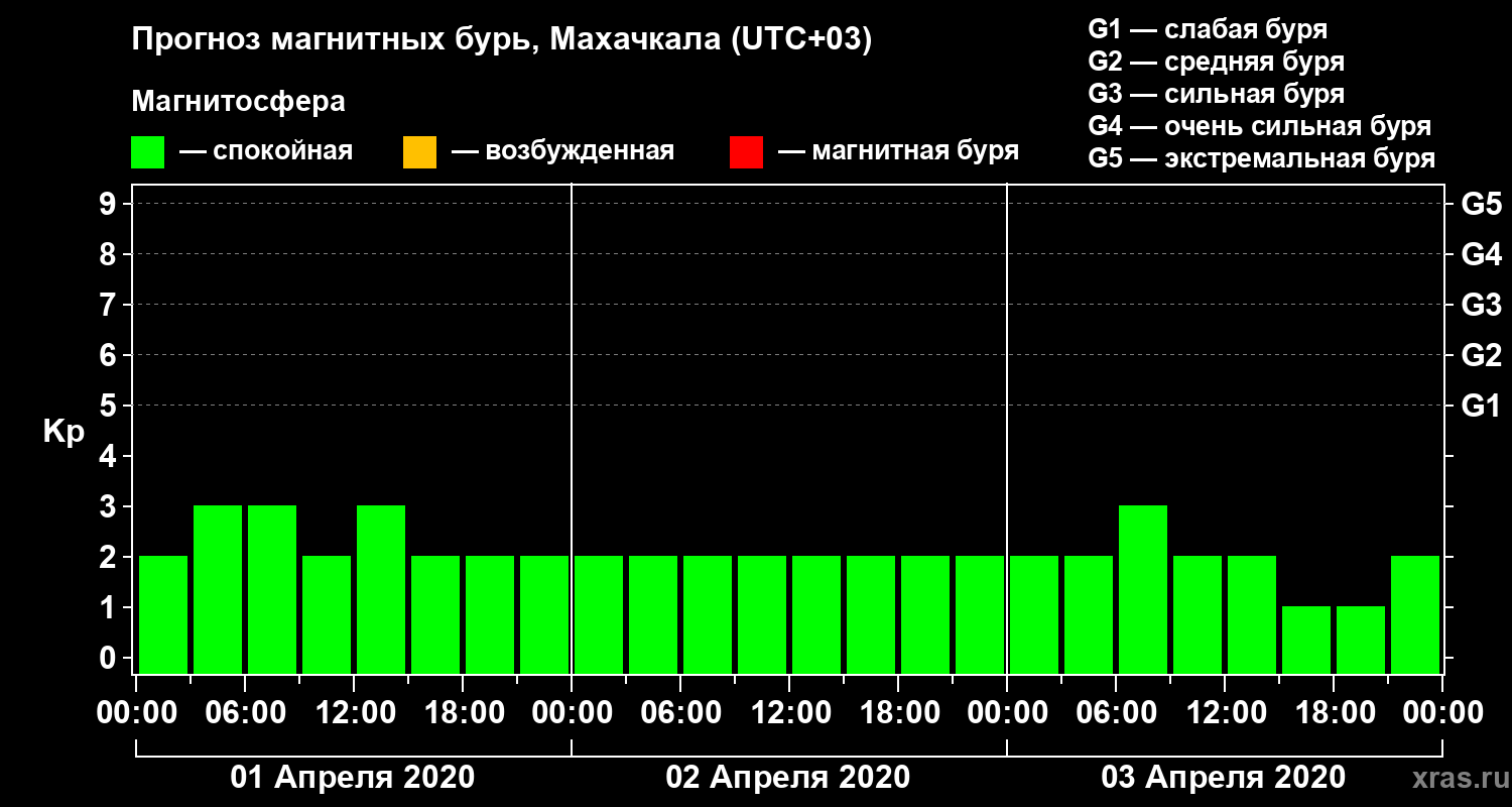 Прогноз магнитных бурь в Махачкале — 1 апреля 2020 года
