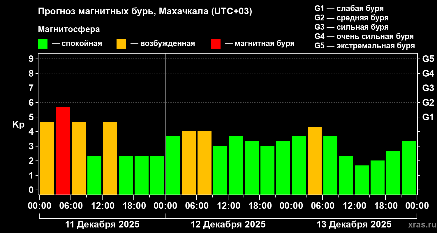 Прогноз магнитных бурь в Махачкале — 11 декабря 2025 года