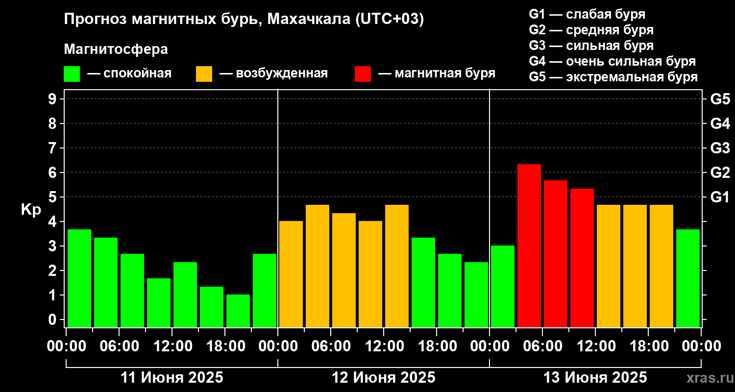 Прогноз магнитных бурь в Махачкале — 11 июня 2025 года