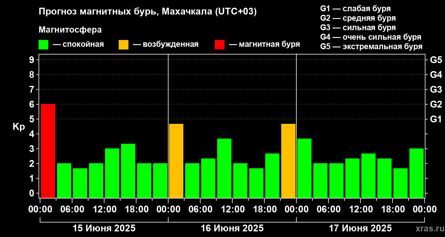 Прогноз магнитных бурь в Махачкале — 15 июня 2025 года