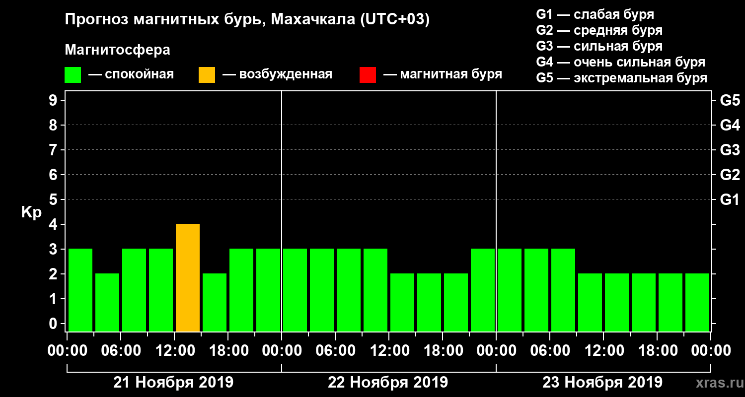 Прогноз магнитных бурь в Махачкале — 21 ноября 2019 года