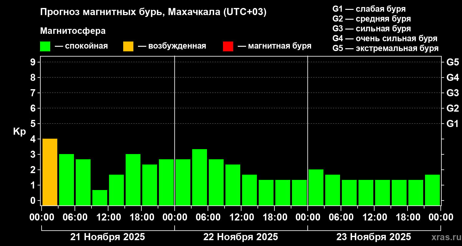 Прогноз магнитных бурь в Махачкале — 21 ноября 2025 года