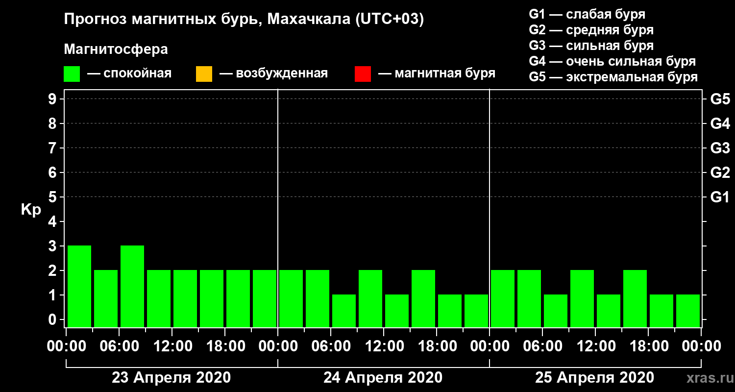 Прогноз магнитных бурь в Махачкале — 23 апреля 2020 года