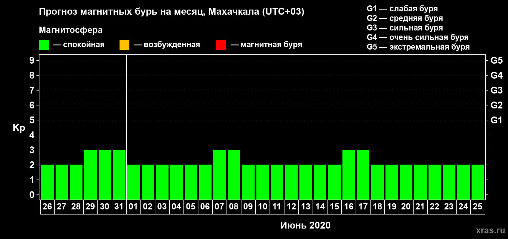 Прогноз магнитных бурь в Махачкале — 26 мая 2020 года