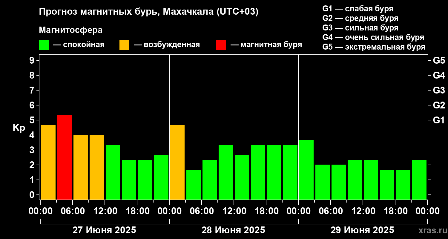 Прогноз магнитных бурь в Махачкале на 27 июня 2025 года