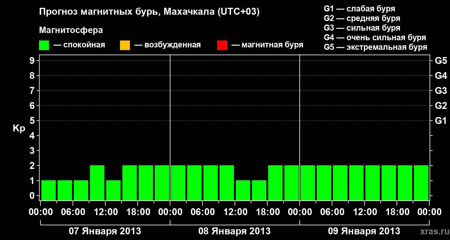Прогноз магнитных бурь в Махачкале — 7 января 2013 года