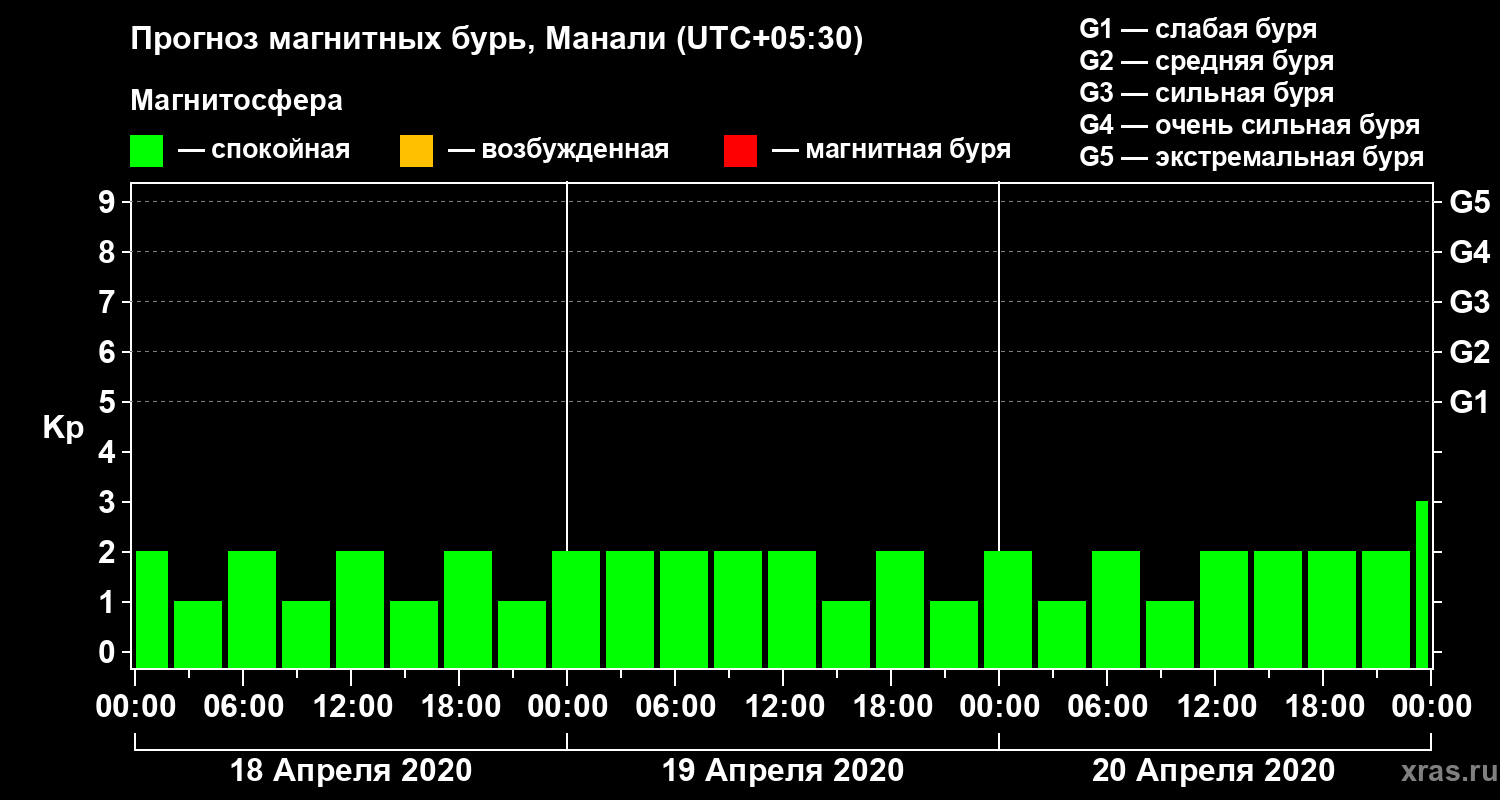 Прогноз магнитных бурь Манали на 18 апреля 2020 года