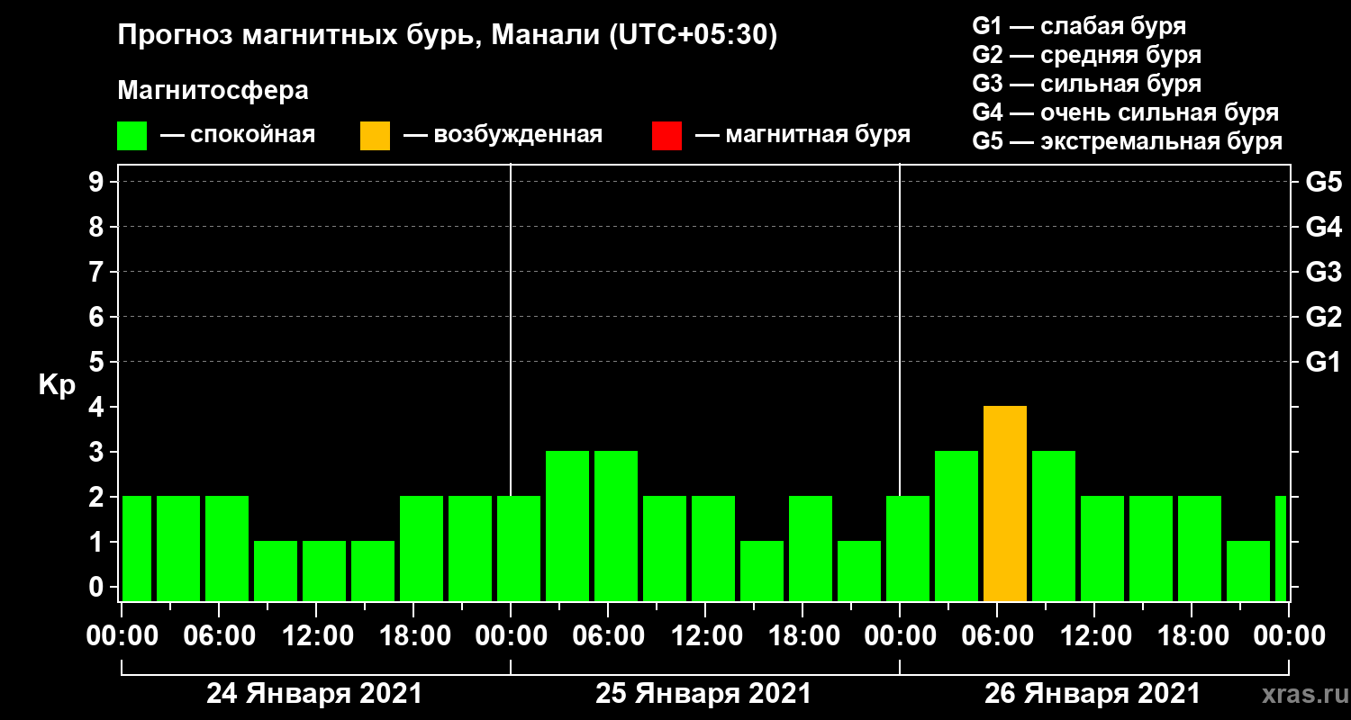 Прогноз магнитных бурь Манали на 24 января 2021 года