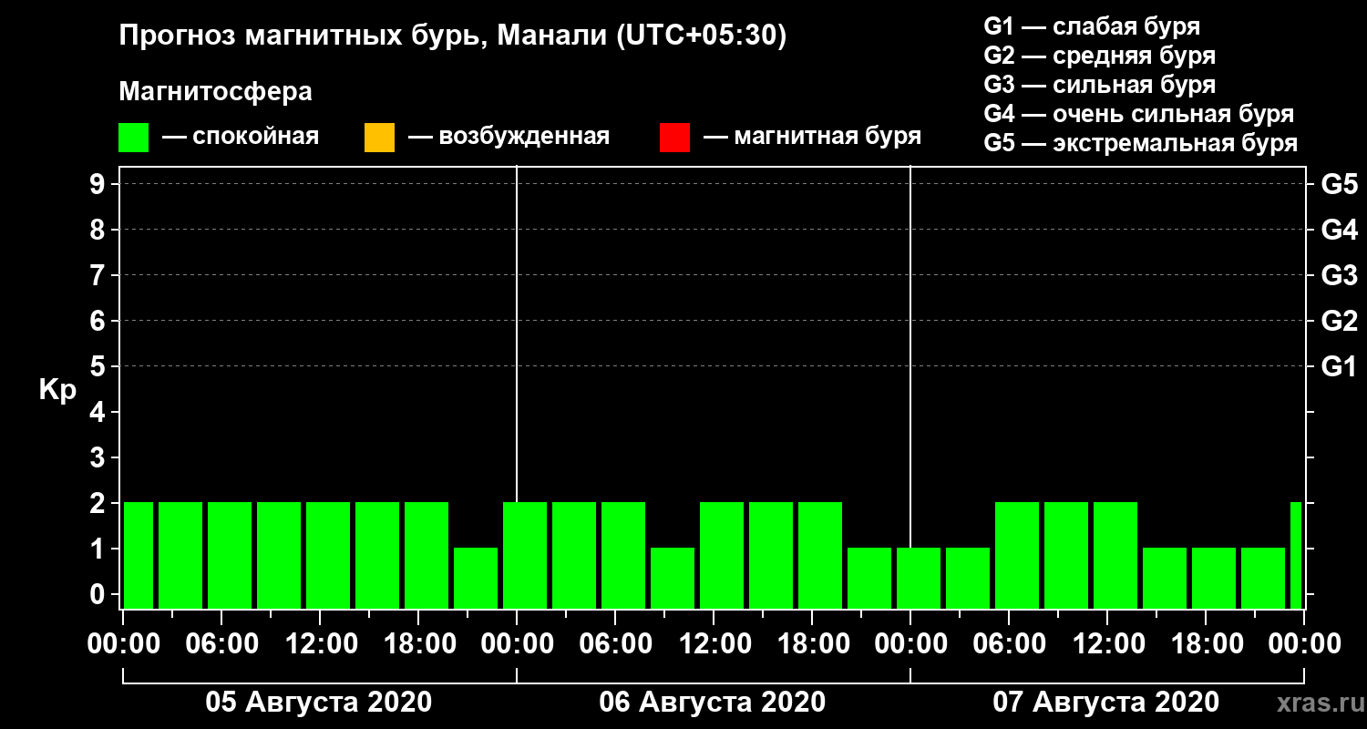 Прогноз магнитных бурь Манали на 5 августа 2020 года