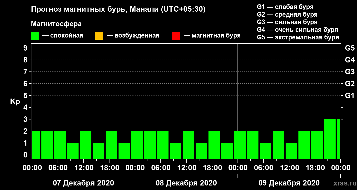 Прогноз магнитных бурь Манали на 7 декабря 2020 года