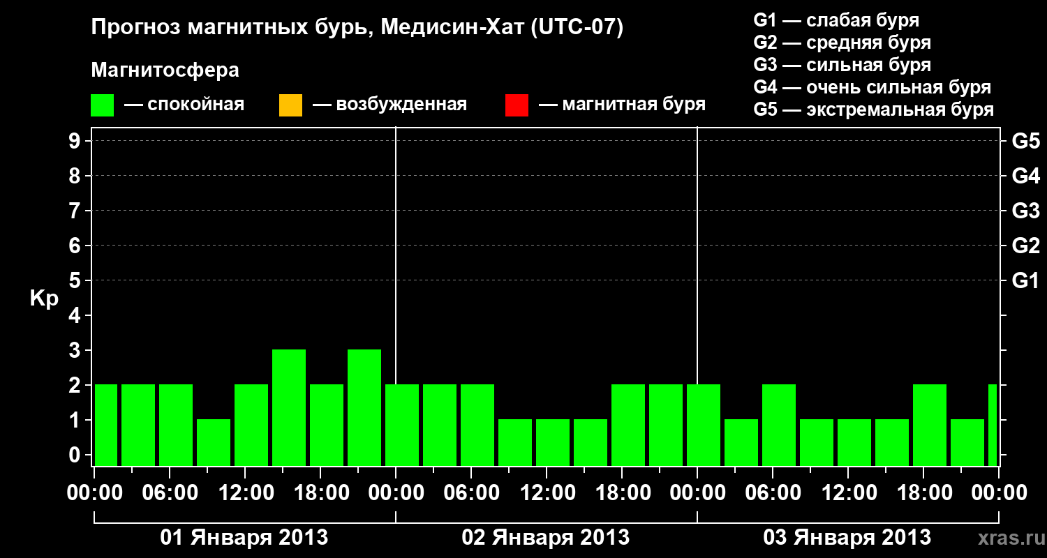 Прогноз магнитных бурь в Медисин-Хате — 1 января 2013 года