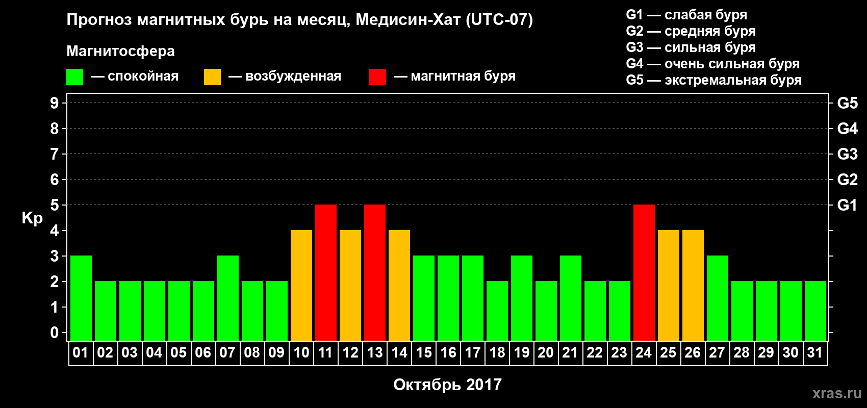 Прогноз магнитных бурь в Медисин-Хате — 1 октября 2017 года