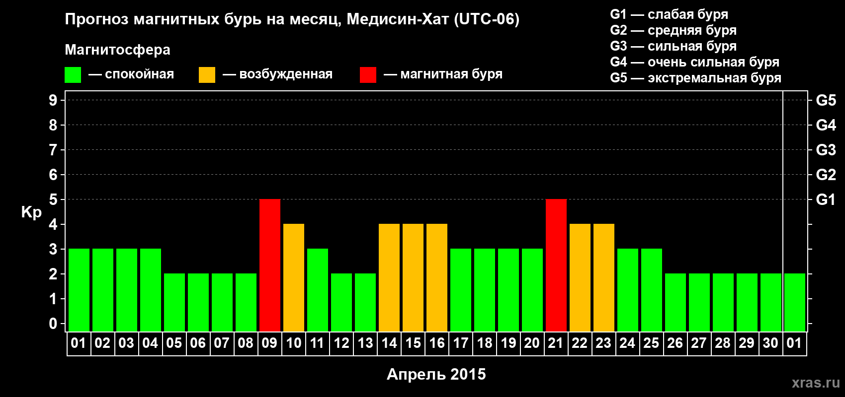 Прогноз магнитных бурь в Медисин-Хате на 1 апреля 2015 года