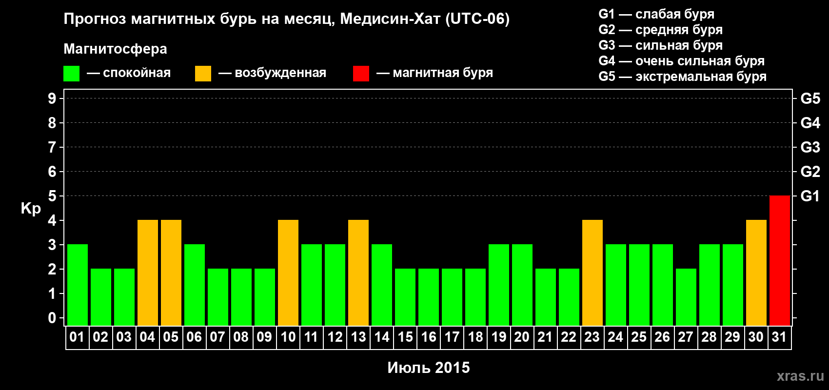 Прогноз магнитных бурь в Медисин-Хате — 1 июля 2015 года