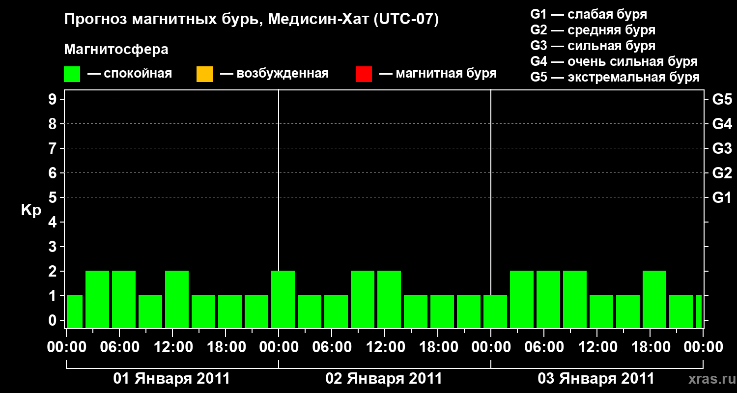 Прогноз магнитных бурь в Медисин-Хате — 1 января 2011 года