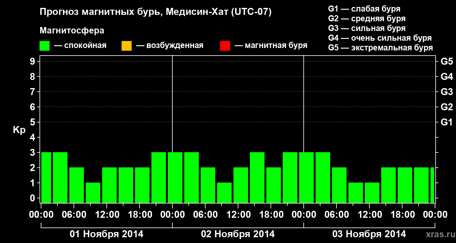 Прогноз магнитных бурь в Медисин-Хате — 1 ноября 2014 года