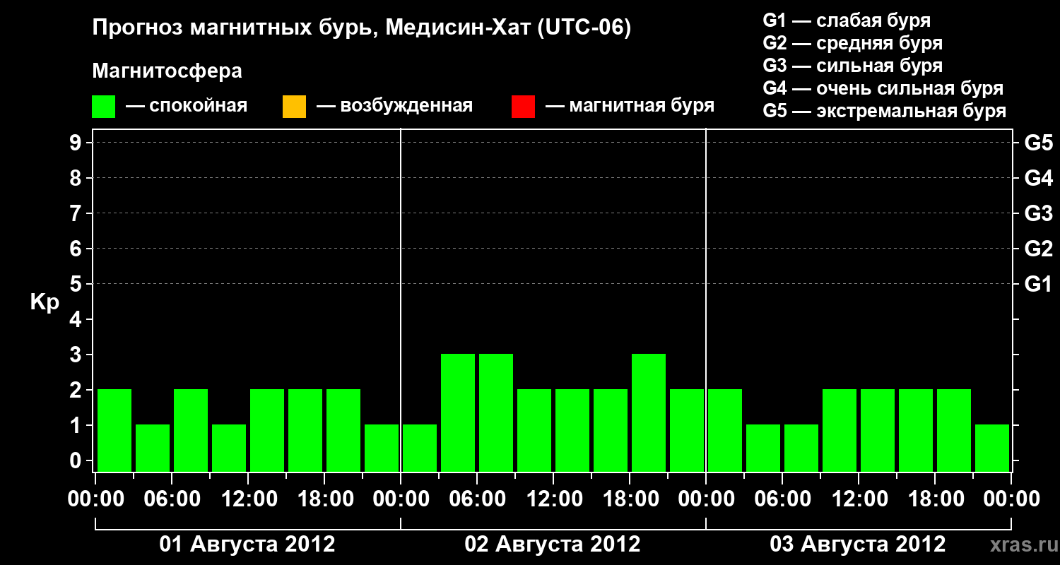 Прогноз магнитных бурь в Медисин-Хате — 1 августа 2012 года