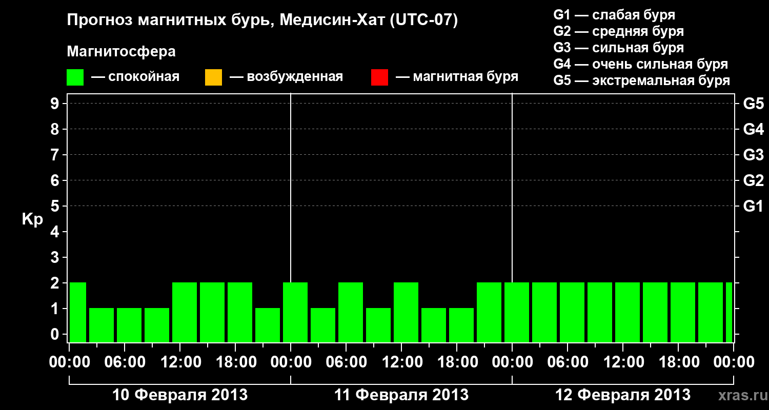 Прогноз магнитных бурь в Медисин-Хате — 10 февраля 2013 года