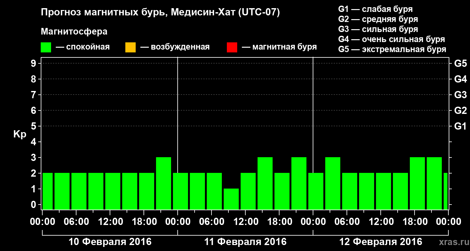 Прогноз магнитных бурь в Медисин-Хате — 10 февраля 2016 года