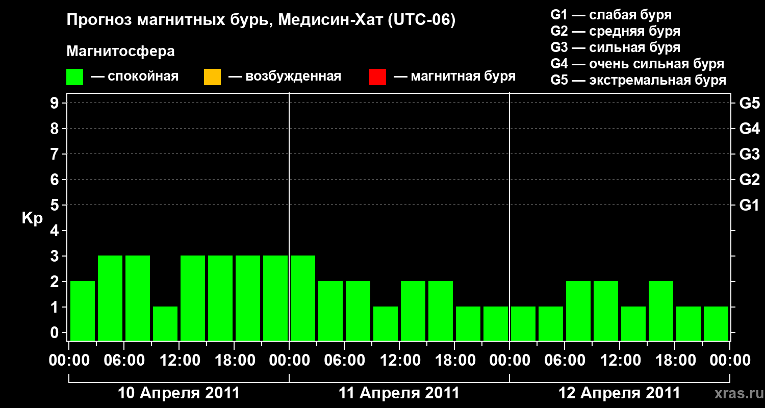 Прогноз магнитных бурь в Медисин-Хате — 10 апреля 2011 года