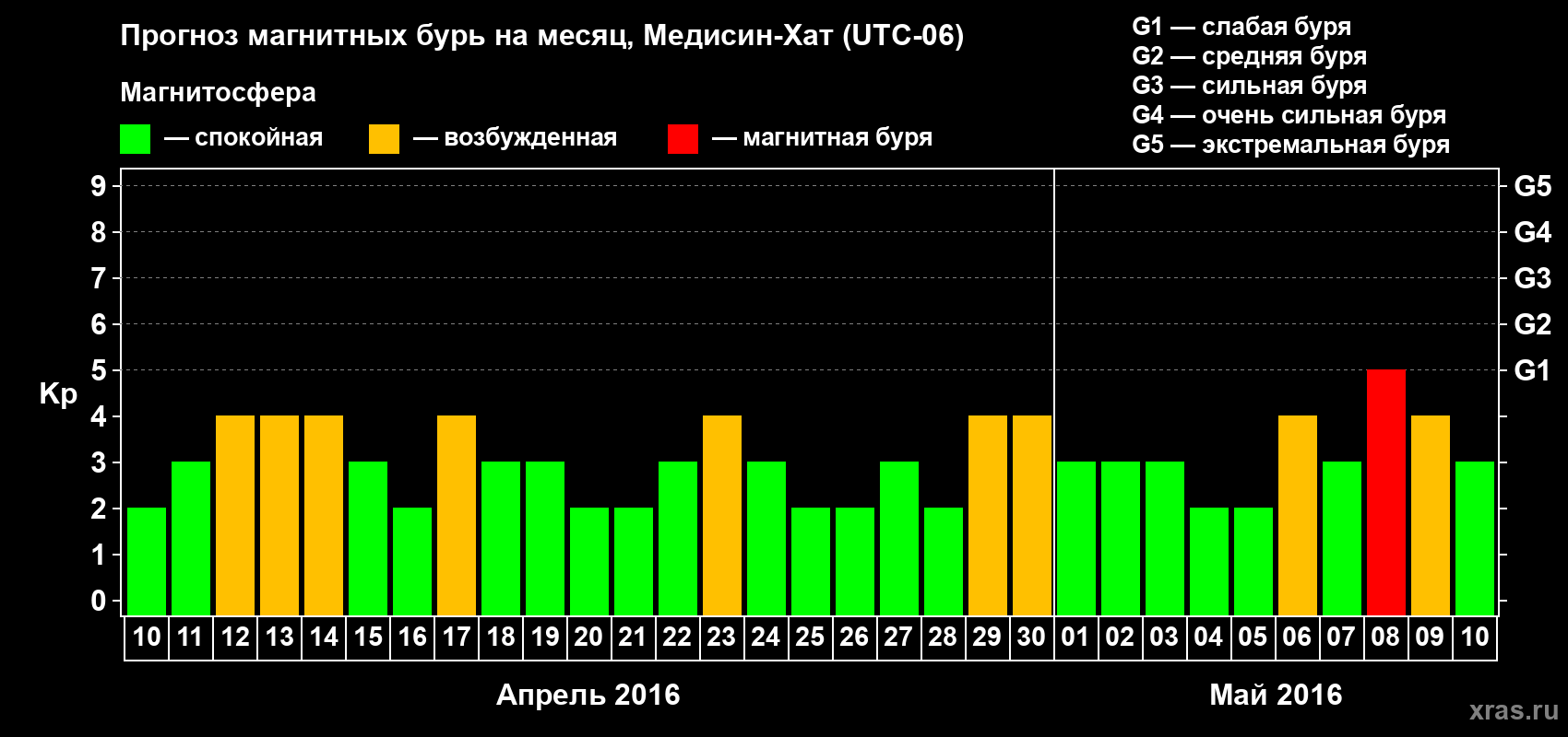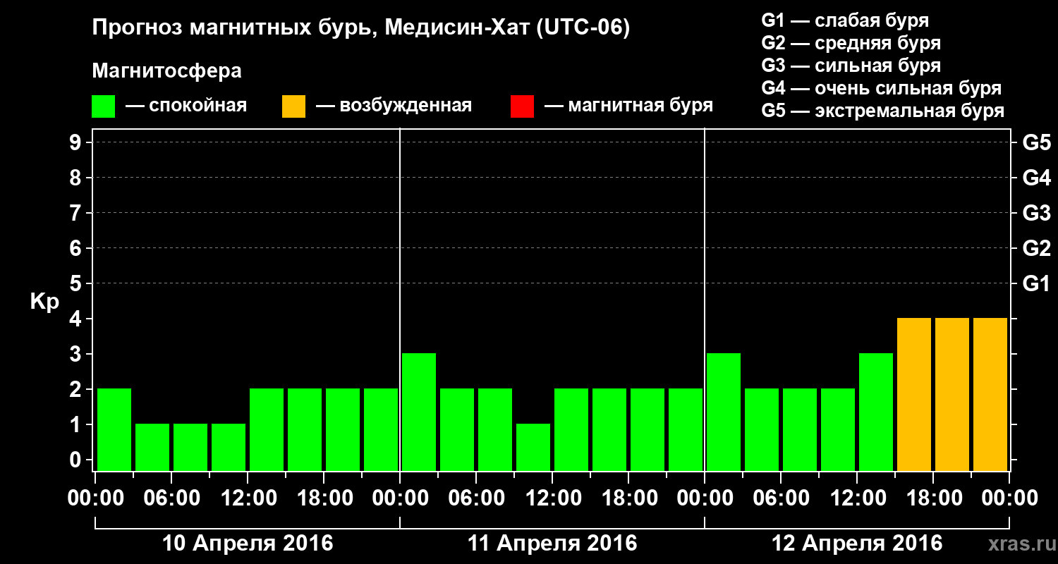 Прогноз магнитных бурь в Медисин-Хате — 10 апреля 2016 года