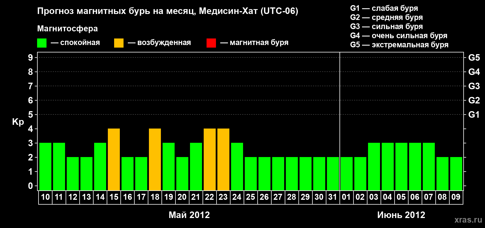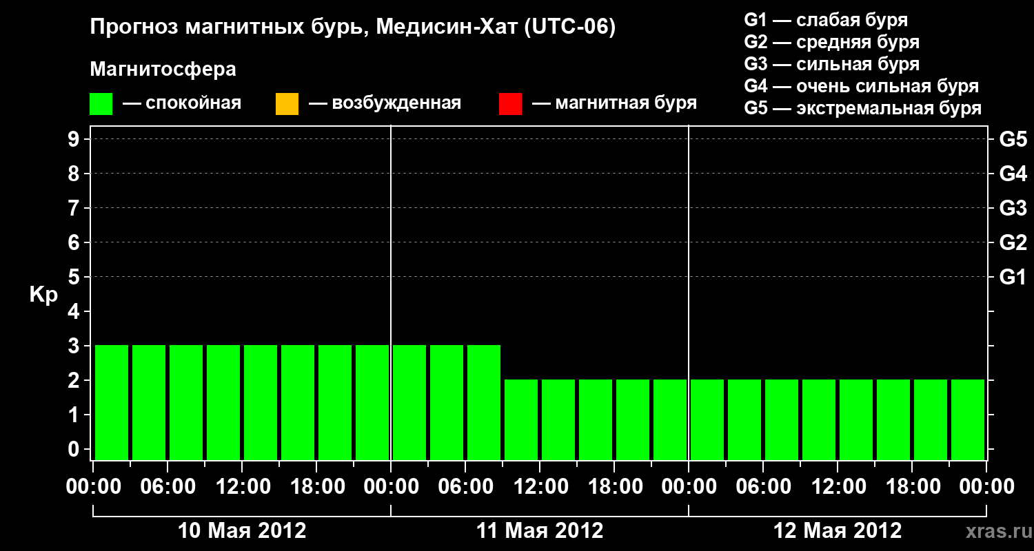 Прогноз магнитных бурь в Медисин-Хате — 10 мая 2012 года