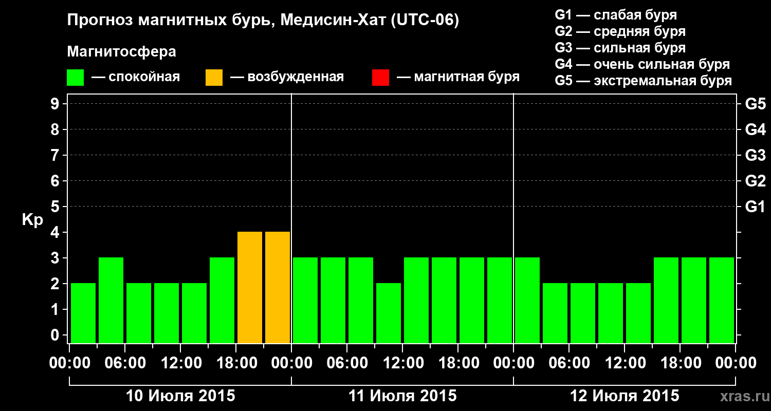 Прогноз магнитных бурь в Медисин-Хате — 10 июля 2015 года
