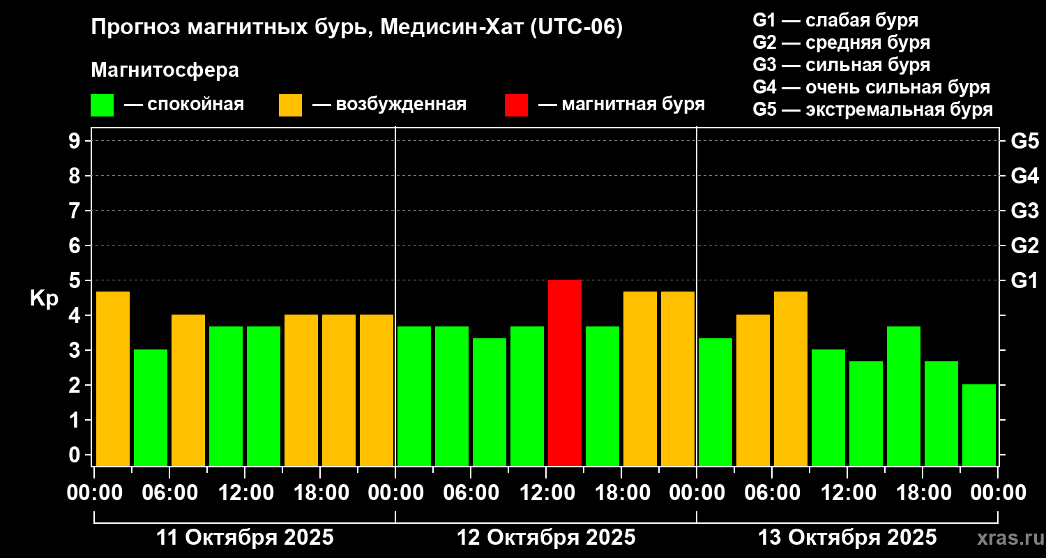 Прогноз магнитных бурь в Медисин-Хате — 11 октября 2025 года