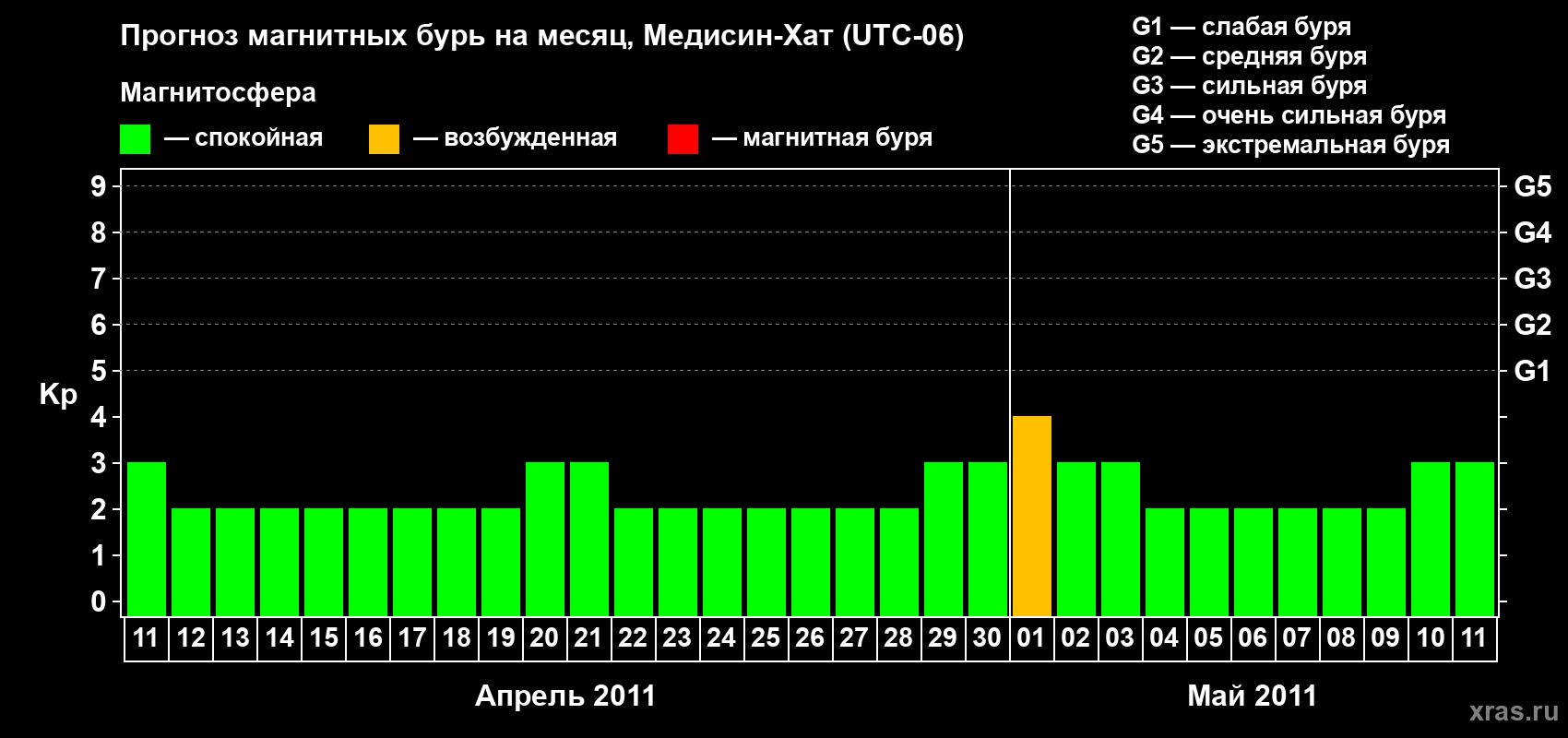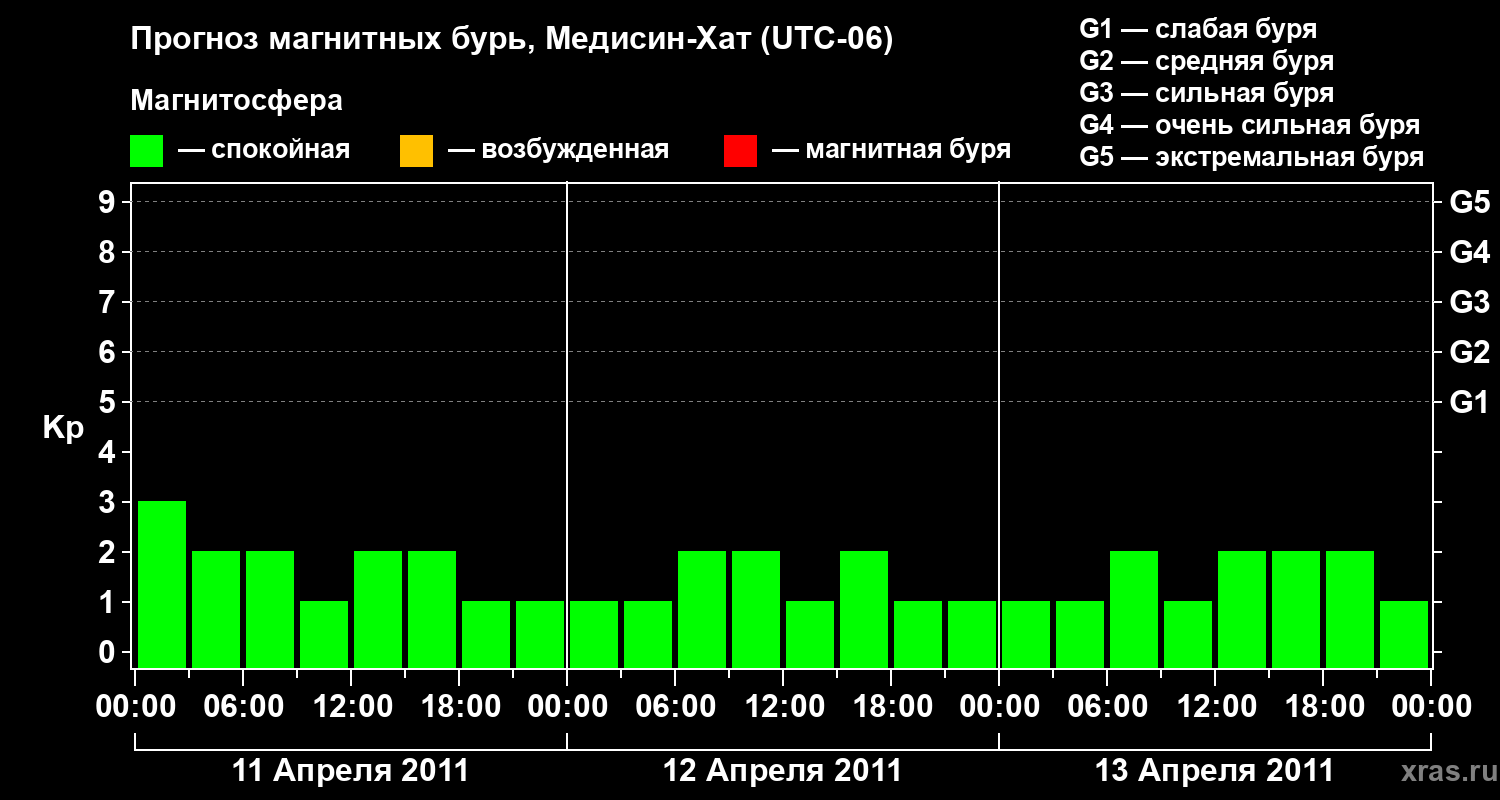 Прогноз магнитных бурь в Медисин-Хате — 11 апреля 2011 года