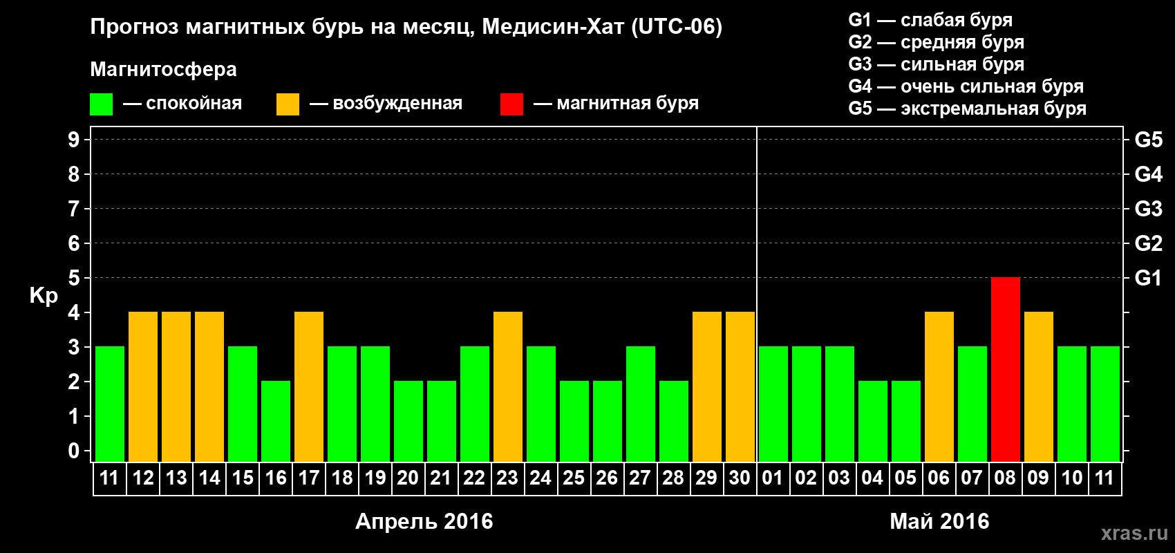 Прогноз магнитных бурь в Медисин-Хате — 11 апреля 2016 года