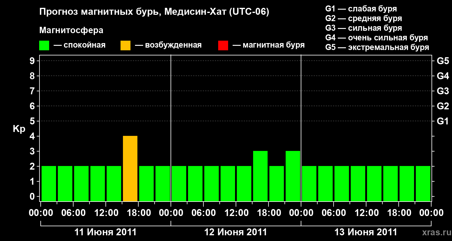 Прогноз магнитных бурь в Медисин-Хате — 11 июня 2011 года