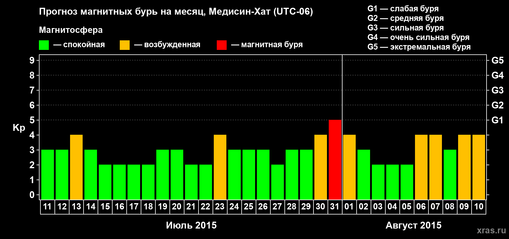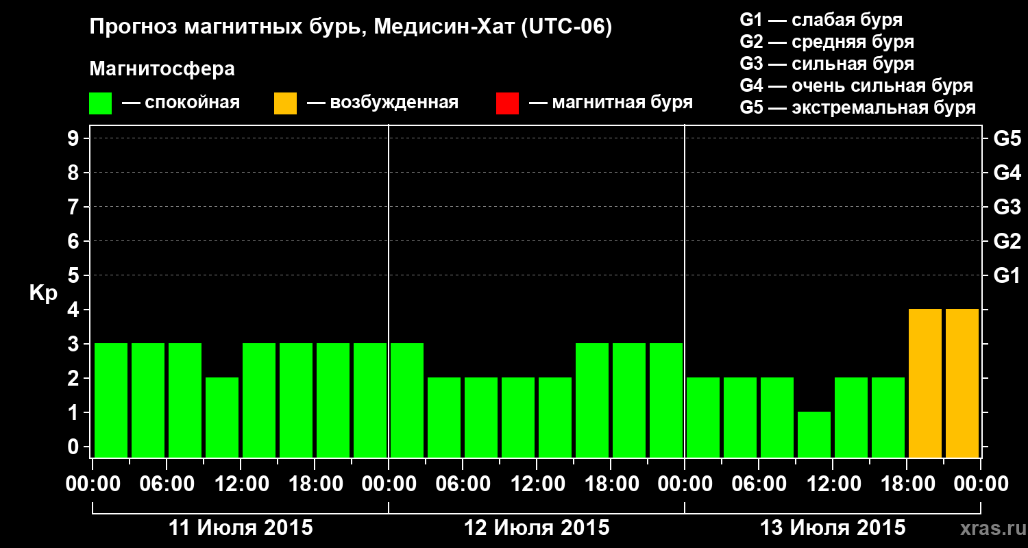Прогноз магнитных бурь в Медисин-Хате — 11 июля 2015 года
