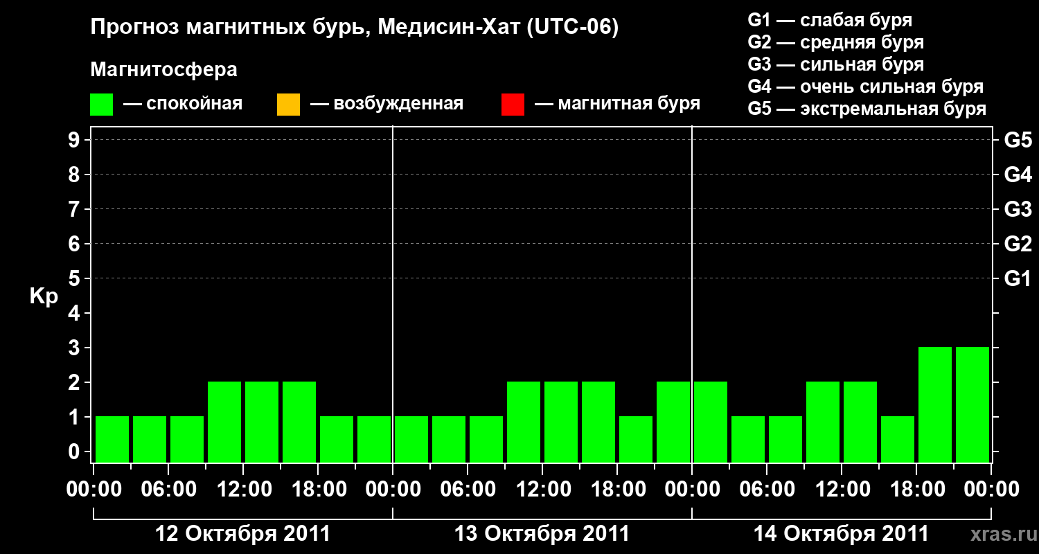 Прогноз магнитных бурь в Медисин-Хате — 12 октября 2011 года