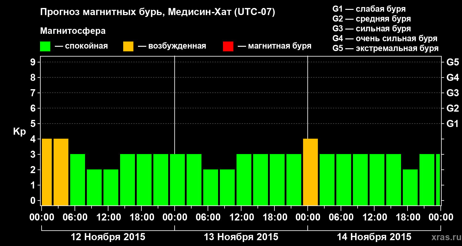 Прогноз магнитных бурь в Медисин-Хате — 12 ноября 2015 года
