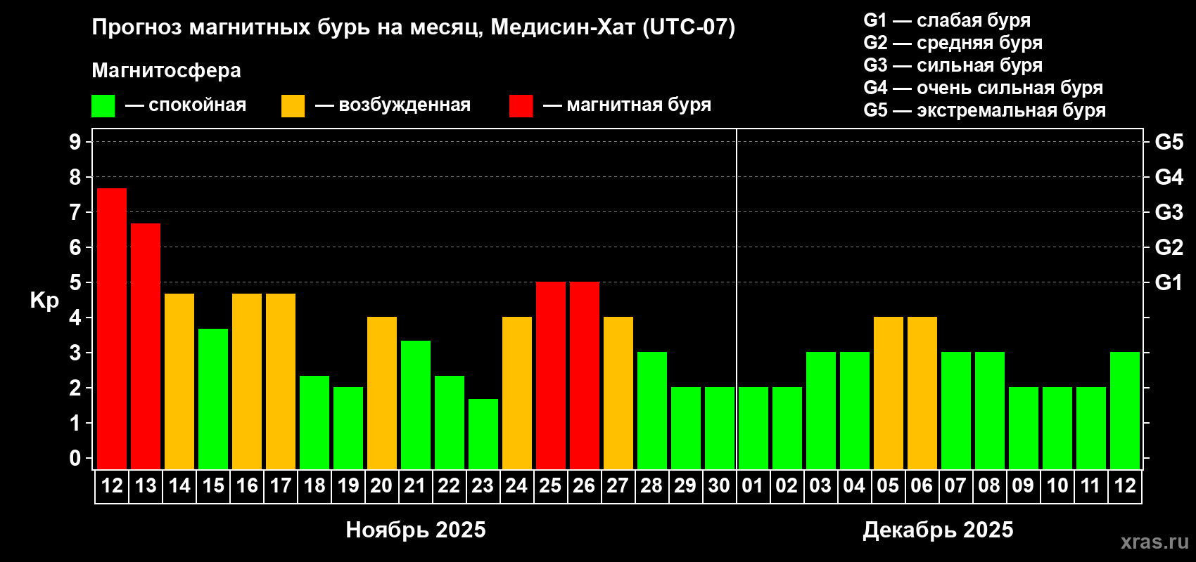 Прогноз магнитных бурь в Медисин-Хате — 12 ноября 2025 года