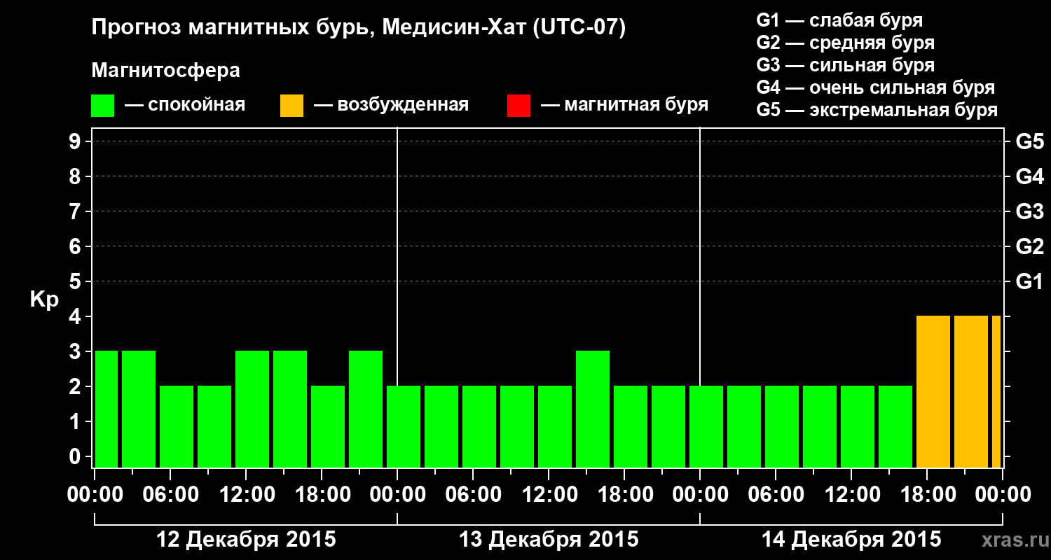 Прогноз магнитных бурь в Медисин-Хате — 12 декабря 2015 года