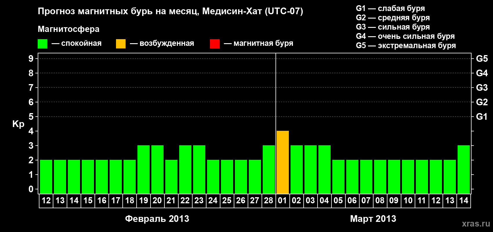 Прогноз магнитных бурь в Медисин-Хате — 12 февраля 2013 года