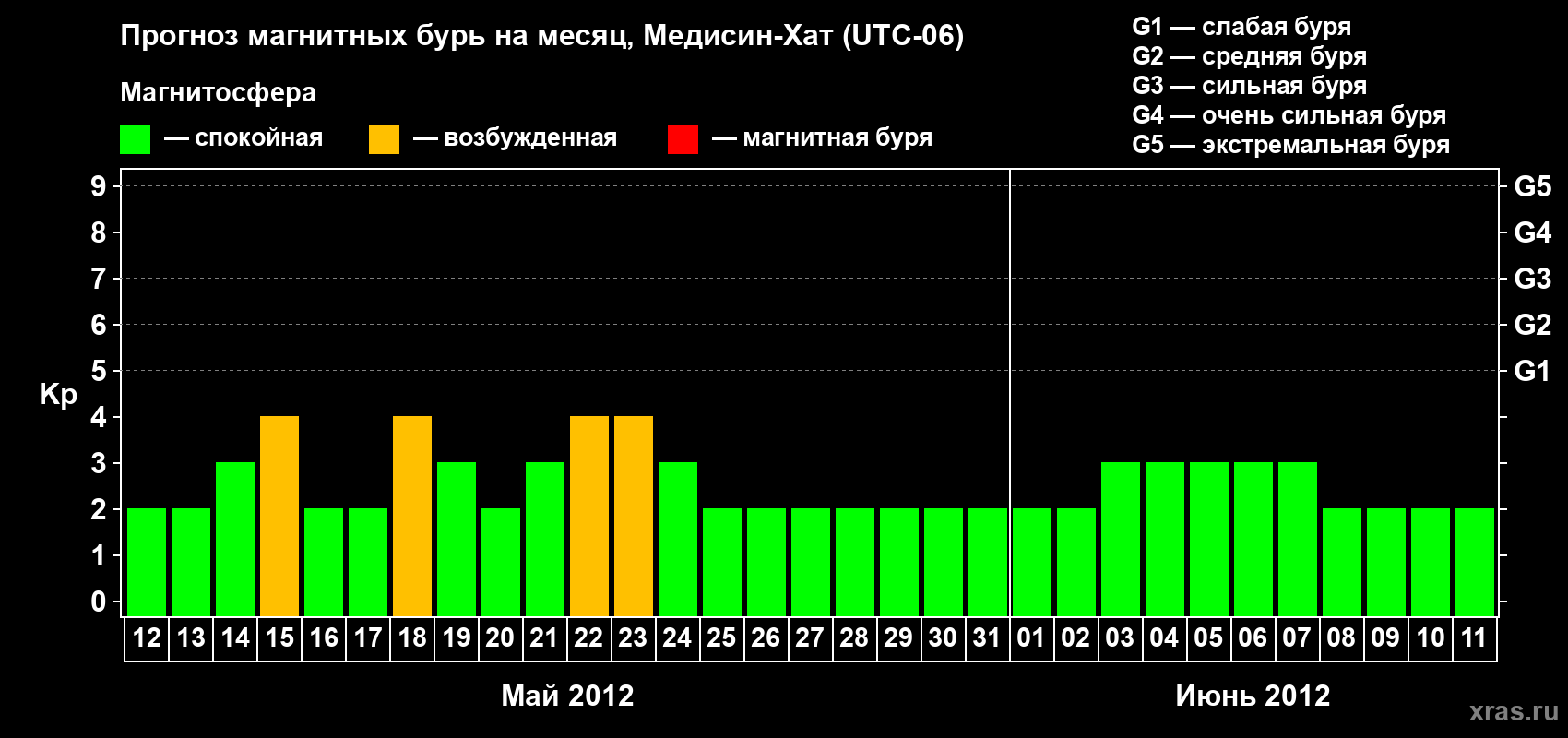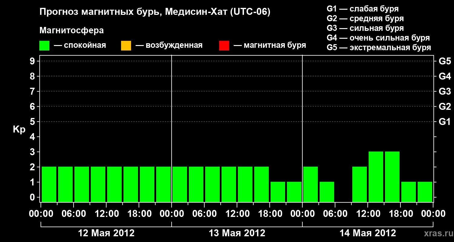 Прогноз магнитных бурь в Медисин-Хате — 12 мая 2012 года